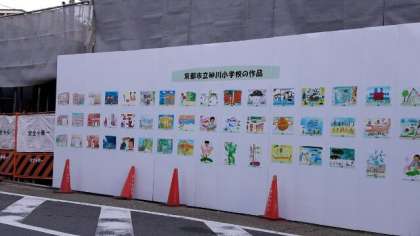 工事仮設囲い塀に子どもたちの絵が飾られました!