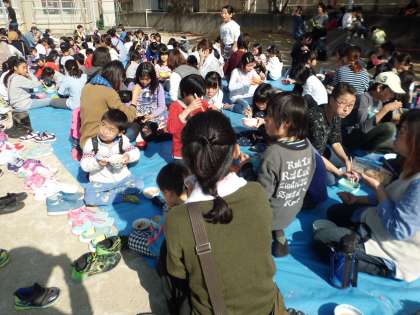とうとう,出来上がりました。おいしいきのこご飯・豚汁をいただきまーす。
