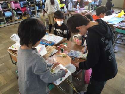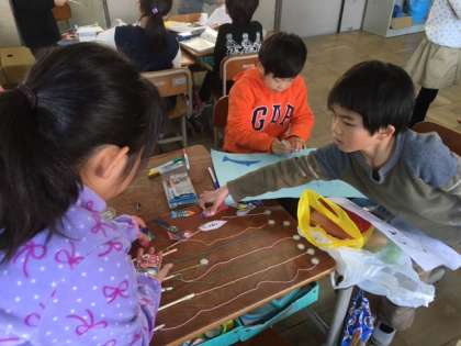 魚つりや,キャップずもう,輪なげ・・・それぞれのグループが工夫をして,色々なおもちゃを作っています。再来週には,1年生を招待して,おもちゃフェスティバルを開催する予定です。