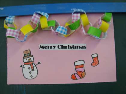 ステキなクリスマスリースが出来上がった人は,クリスマスカードを作りました。