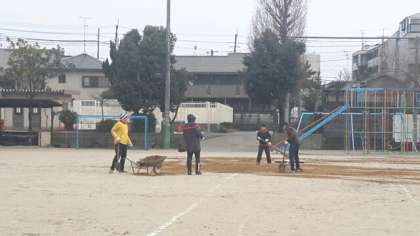みんなで土を運び,土を撒き,ならしてくれています。