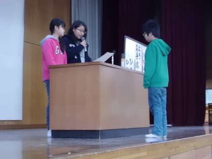 昨日の朝会では、秋の歯科検診の結果、歯の治療が全員終わった「わかば学級」に、児童保健委員会から賞状を渡しました。