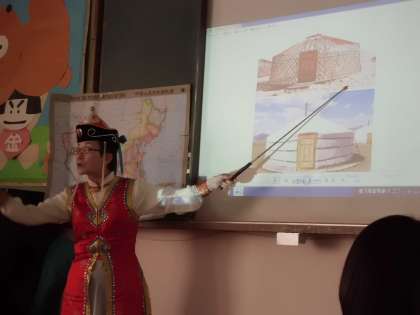今日は,モンゴル出身の先生に来ていただき,モンゴルについて教えていただきました。