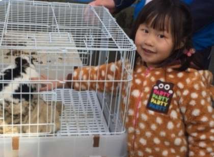 普段は小屋の中にいるうさぎに触ることができて,「ふわふわー!」「かわいいなぁ」とうれしそうにしていました。