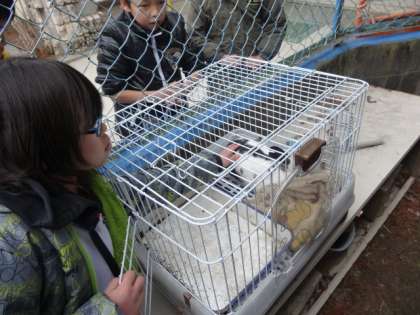 中間休みに飼育委員によるウサギのふれあいイベントがありました。