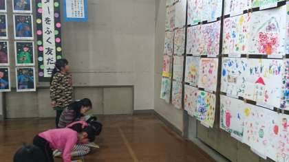 全校の子どもたちの作品がひとつの会場に並びました。