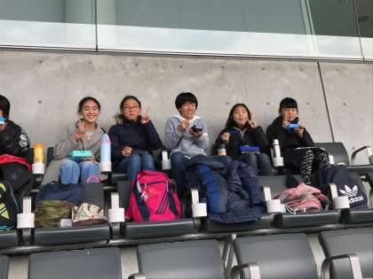 交通安全教室が終わり、みんなでバイクレースを観戦しながらお弁当です!