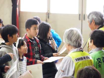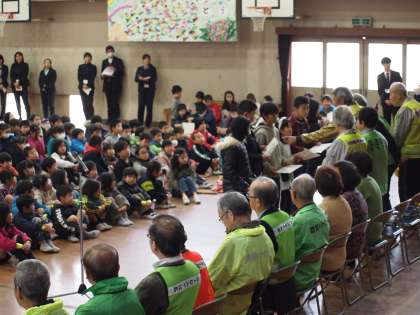 今日は1時間目にいつもお世話になっている地域の方々に感謝の気持ちをお伝えする「感謝の会」がありました。今年は6年生が児童代表として感謝状を作成しました。6年間,暑い日も,寒い日も,雨の日も,雪の日も毎日見守っていただき本当にありがとうございました。