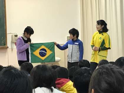 今日は3時間目に総合の授業で外国の文化について勉強しました。講師にブラジル出身のヴィオレッタさんをお招きして,ブラジルの生活や文化についてのお話を聞きました。昨年のリオオリンピックの影響もあり,子どもたちはブラジルについての話を熱心に聞いていました。