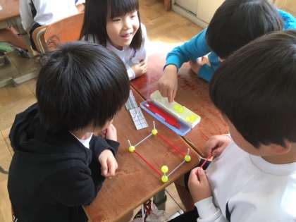 組み立てながら,どの頂点にも3本のひごが組み合わさっていることがよくわかったようです。