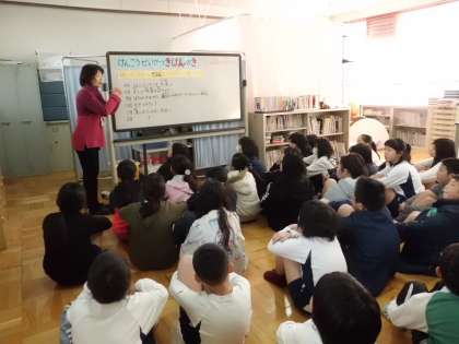 おう吐物や下痢便には触らないこと,換気をすること,手洗いは「どんぐりころころ」を2回分(30秒)することなど,子どもができることを指導しました。