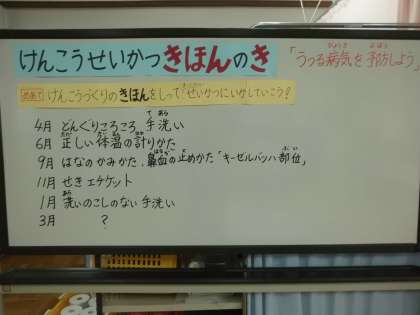 今年度の保健指導のテーマは「けんこうせいかつ きほんのき」です。