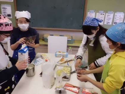 デザート作りということで楽しみながら調理が始まりました。もちろん!