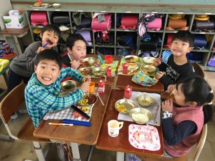 昨日の給食のメインディッシュは、大きな大きな豚カツでした。子どもたちは、大喜び!!大好きな豚カツを食べている子どもたちの顔はとっても微笑ましいものでした。あっという間に平らげていました。1年に1回の豚カツの日。普段の給食もおいしいですが、昨日は特別に贅沢に感じられる給食でしたね。