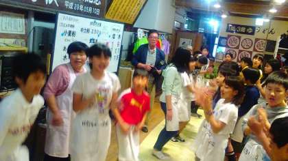 生地づくりの足踏みは軽快な音楽に合わせてみんなでダンスをして盛り上げました。最高に楽しい授業となりました。
