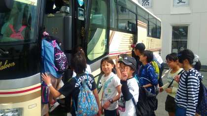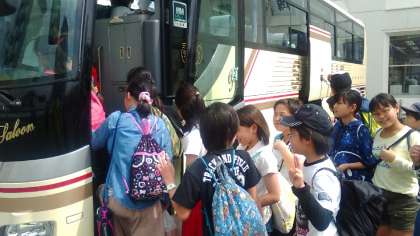 楽しかったおみやげの買い物タイムも終わり、今からバスに乗って京都に帰ります。全員元気です。リュックには、買ったおみやげと楽しかった想い出をいっぱいつめています。では、京都に向かって出発します。