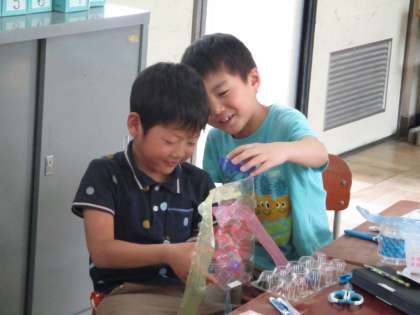 「ここに色セロハンを貼ったらいいんじゃないかな。」「こうしたら,きれいにうつりそう。」など楽しみながら学習しました。