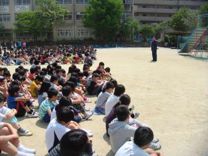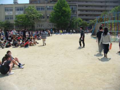 各クラスでの事前指導の後,速やかに運動場に避難することができました。