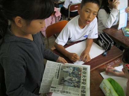 国語科で新聞について学習しました。最後には自分の見つけた記事を友達に紹介する活動を行いました。これを機に新聞を読む機会が増えるといいですね。