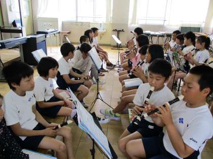 気持ちを合わせ,お互いの響きを感じながら演奏できるように頑張っています。