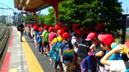 3年生は遠足に出発しました。J R に乗って京都タワーを目指します。