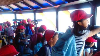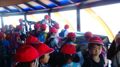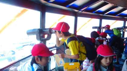 京都タワーの展望台に到着しました。京都の街並みや大文字山などを眺めて、すごいなぁと口々に歓声が上がりました。