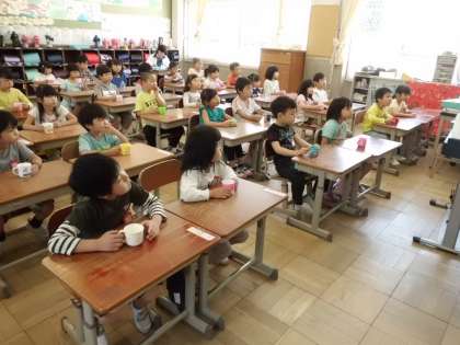 昨日の木曜日から全校でフッ化物洗口を始めました。