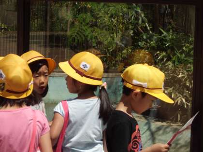 動物園に着くと,注意を聞いて,いよいよグループごとにスタンプラリーに出発です。