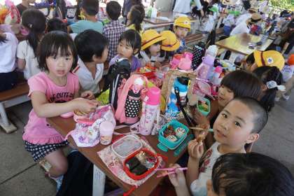 動物園で1時間ぐらい歩いた後は、待ちに待ったお弁当タイム!屋根があるところでグループみんなで食べました。途中でハトが食べたそうにとんでいましたが、何とか大丈夫でした。外で食べるお弁当はまた格別においしいですね。おうちの人に感謝しながらおしいく頂きました。午後の活動に向けて元気が戻りましたね!