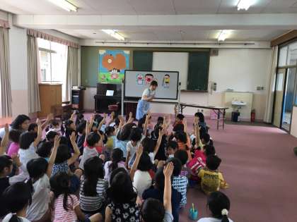 途中で何回かお話についての質問があって、子どもたちは「はい、はい!!」と手を挙げて答えているのが印象的でした。その後は、実際に歯ブラシの持ち方や磨く順番、磨き方を教えて頂きました。毎日のことなので、今のうちに正しい歯の磨き方を覚えておいてほしいと思います。
