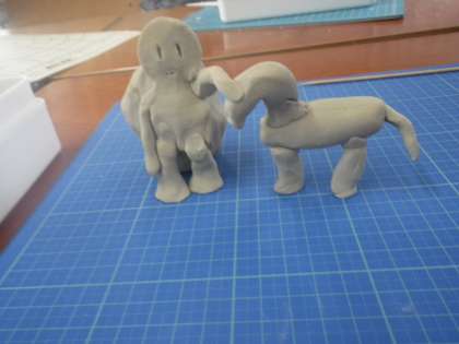 図工では、粘土を使って思い出を形に表す学習をしました。