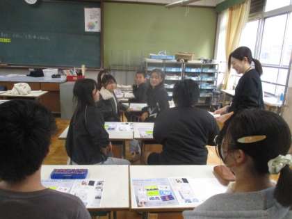 体育館で全体説明会を受けた後に、各教室に分かれて中学校の授業を体験しました。