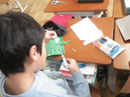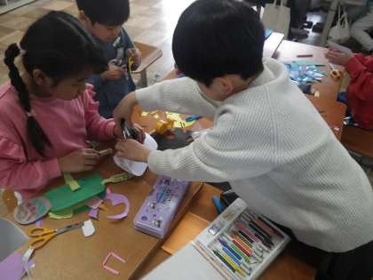ハサミやホッチキスを上手に使いながら、作品を仕上げています。