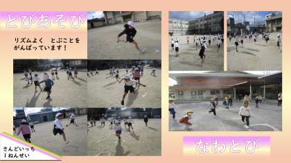 とびあそびでは、リズムよく跳んだり、高く跳んだり、遠くに跳んだりすることを目指し