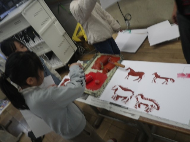 形や色を工夫しながら版画づくりにチャレンジしています。