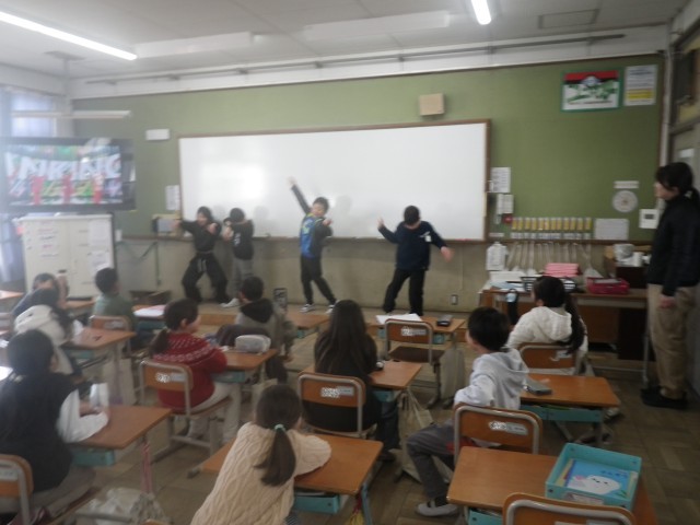 今日の中間休みには、ダンス係とマジック係が発表をしました。
