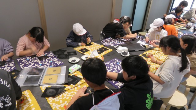 また見学した後に、実際の手ぬぐいに自分達のイニシャル等を染めさせていただき、実際のモノづくりを体験し楽しんでいる様子が見られました。