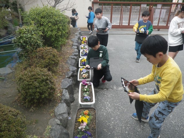 子どもたちは、タブレットでたくさん写真をとり、