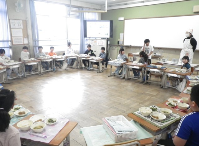 2年生はみんなで輪になって、楽しく、おいしくいただきました。