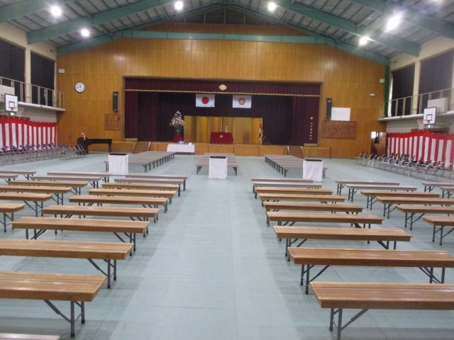 明日はいよいよ卒業式。会場の準備は整いました。