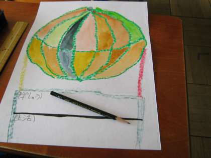 気球の絵のゴンドラ部分に,『学習』と『生活』の今年の目標を書いていました。