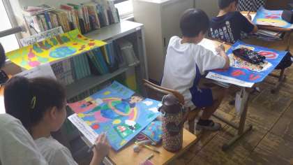 子どもたちの作品にはいろいろな人権について考えて描いていました。