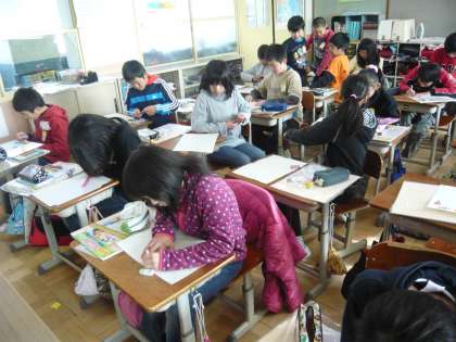 図画工作科では,伝合板作りにチャレンジしています。ホワイトボードの配置やデザインを考えて下絵をかいています。