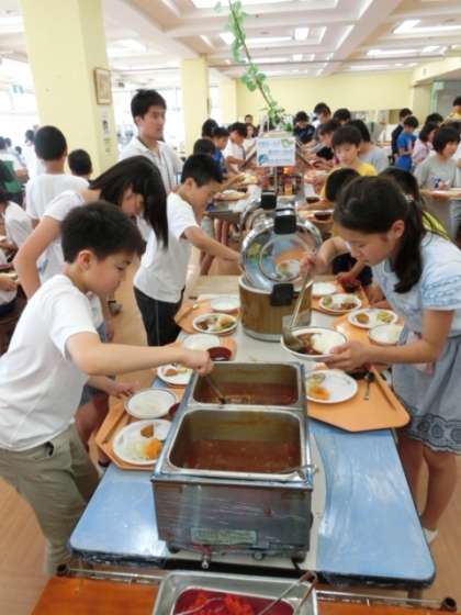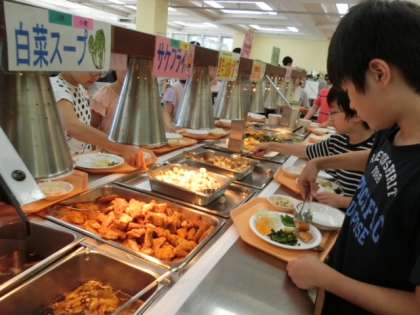 メインはハヤシライスで,さかなのフライやサラダ,白菜スープ等をバイキングで選んで食べました。