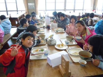 お昼ごはんの様子です。初めてのバイキング、子どもたちはたっぷりと楽しんで食べていました。