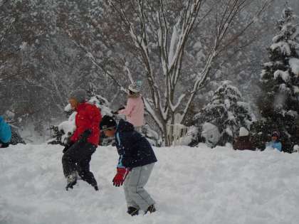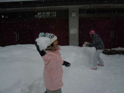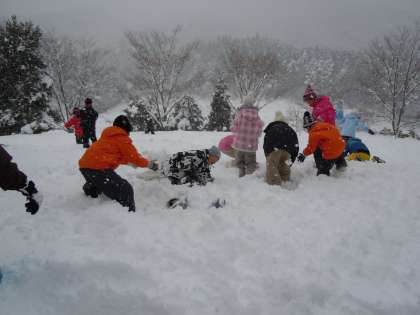 午後からは雪遊びと雪の造形を楽しんでいます。雪がたっぷりとある最高のコンディションの中、子どもたちは思いっきり楽しんでいます。