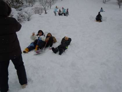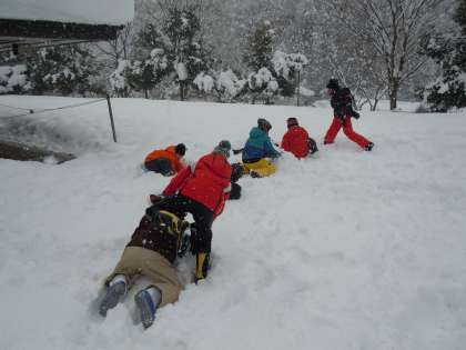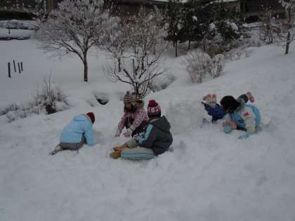午後からは雪遊びと雪の造形を楽しんでいます。雪がたっぷりとある最高のコンディションの中、子どもたちは思いっきり楽しんでいます。