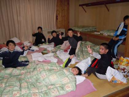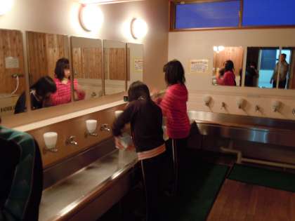 雪遊びを思う存分楽しんで、自分の宿泊する部屋に入りました。水筒を洗って、夕ご飯のときに新しいお茶を入れます。