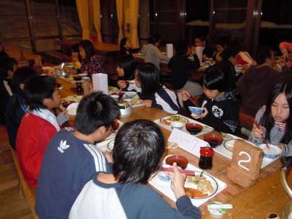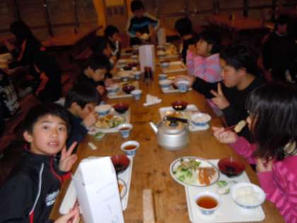 お風呂に入って、夕ご飯を食べました。子どもたちはご飯もおかずもたくさんおかわりしていました。おいしいご飯を満喫しています。今、天候は雪です。きれいな星空を見ることができないかもしれません。
