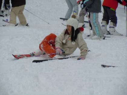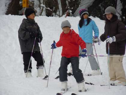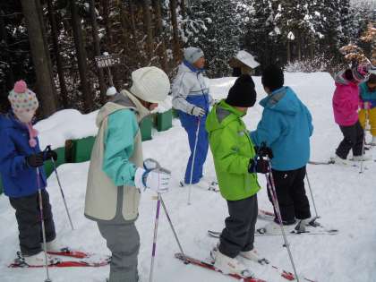 2日目の午前中は、スキー練習をしました。花背山の家にあるゲレンデでスキー靴を履いてすべったり歩いたり転んだりする練習をしました。その様子1です。